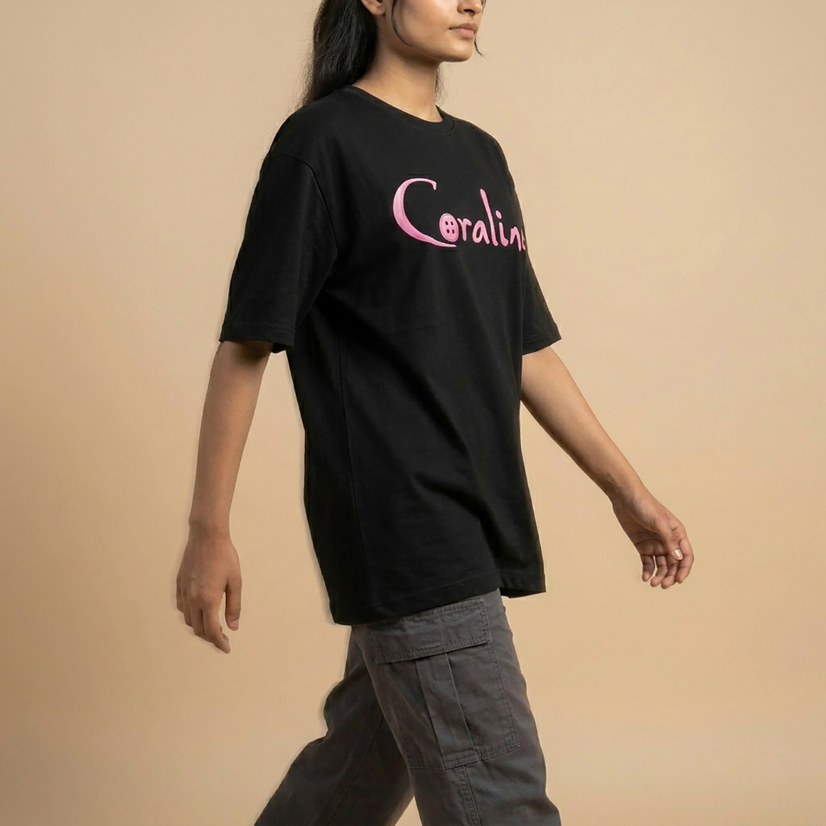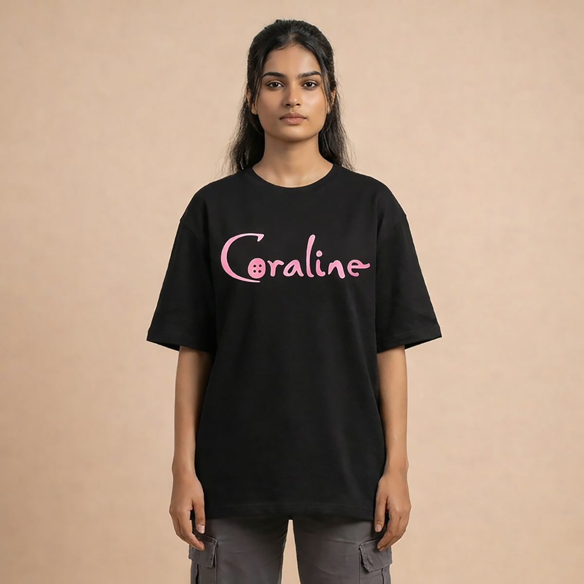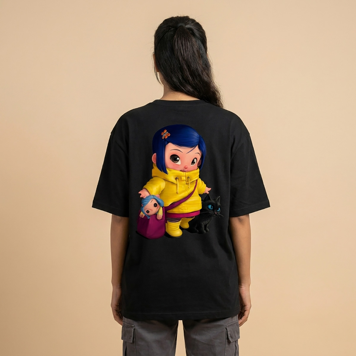 The Prithos Coraline Aesthetic Oversized T-Shirt celebrates individuality. Featuring a quirky, eye-catching character design, this piece is made for those who don’t follow trends—they create them.